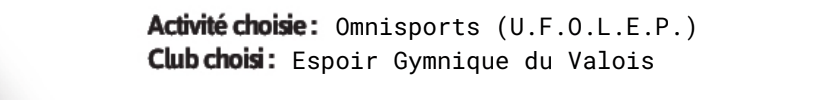 • Pass Oise Sport – Le club à choisir dans la liste est omnisports (UFOLEP) et ensuite choisir le club Espoir Gymnique Valois