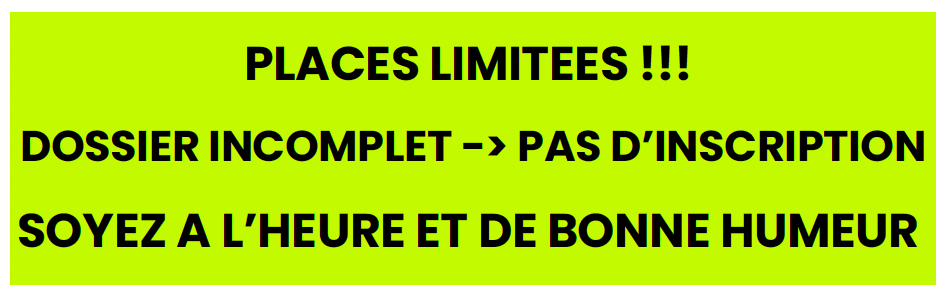 Règlement en espèce ou en chèque uniquement (CB non acceptée)